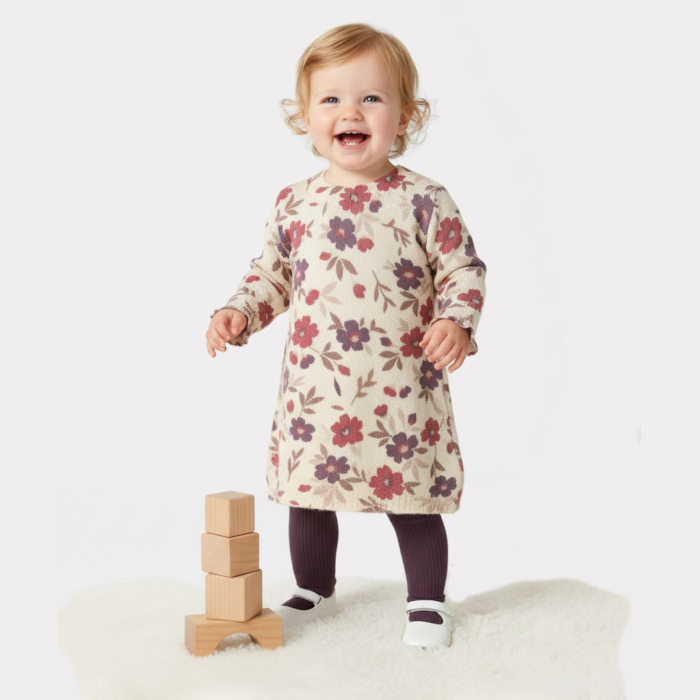 Le tissu tricoté est non seulement joli mais aussi durable. Il garde sa forme lavage après lavage, ce qui en fait un choix judicieux pour le quotidien. Les tons et motifs s’accordent aisément avec d’autres vêtements ou accessoires comme des gilets, bonnets ou bottillons. Ce style à la fois intemporel et tendance permet à cette robe de traverser les saisons sans jamais perdre en charme. C’est un choix polyvalent qui s’intègre naturellement dans la garde-robe des tout-petits.
